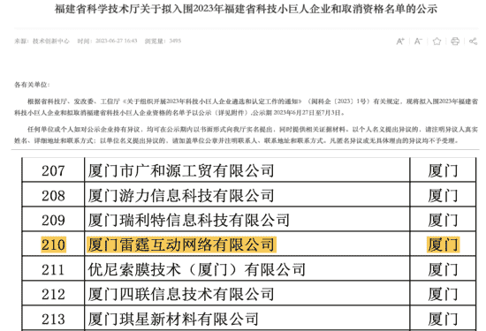 此次再次入选福建省科技小巨人企业既是对雷霆互动创新能力的认可,,,,也是对市场发展潜力及综合实力的高度肯定。。。
